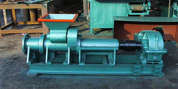 煤棒機是將粉末狀原煤制成不同形狀條形塊的機具。其工作原理是:電動機經三角帶把動力傳給變速器,變速器輸出軸通過浮動聯(lián)軸器把動力傳給推進軸,推進軸上的推進其推動煤料經成型模頭推出,便產生出理想的高壓煤棒。