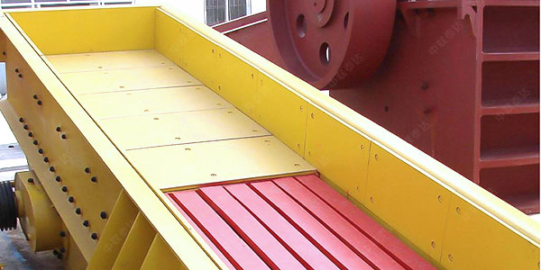 振動給料機又稱振動喂料機。該系列振動給料機,是專為破碎篩分中粗破碎機前均勻輸送大塊物料而設計的新型振動給料機。該振動給料機采用雙偏心軸激振器的結構特點,保證設備能承受大塊物料下落的沖擊,給料能力大。在生產流程中可以把塊狀、顆粒狀物料從貯料倉中均勻、定時、連續地給到受料裝置中去,從而防止受料裝置因進料不均而產生死機的現象,延長了設備使用壽命。
