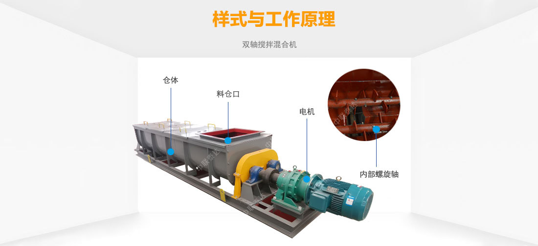 雙軸攪拌機(jī)主要由機(jī)殼、螺旋軸總成、驅(qū)動(dòng)裝置、配管、蓋板、鏈罩等部件組成(詳見隨機(jī)外供圖),具體結(jié)構(gòu)性能特點(diǎn)如下:
